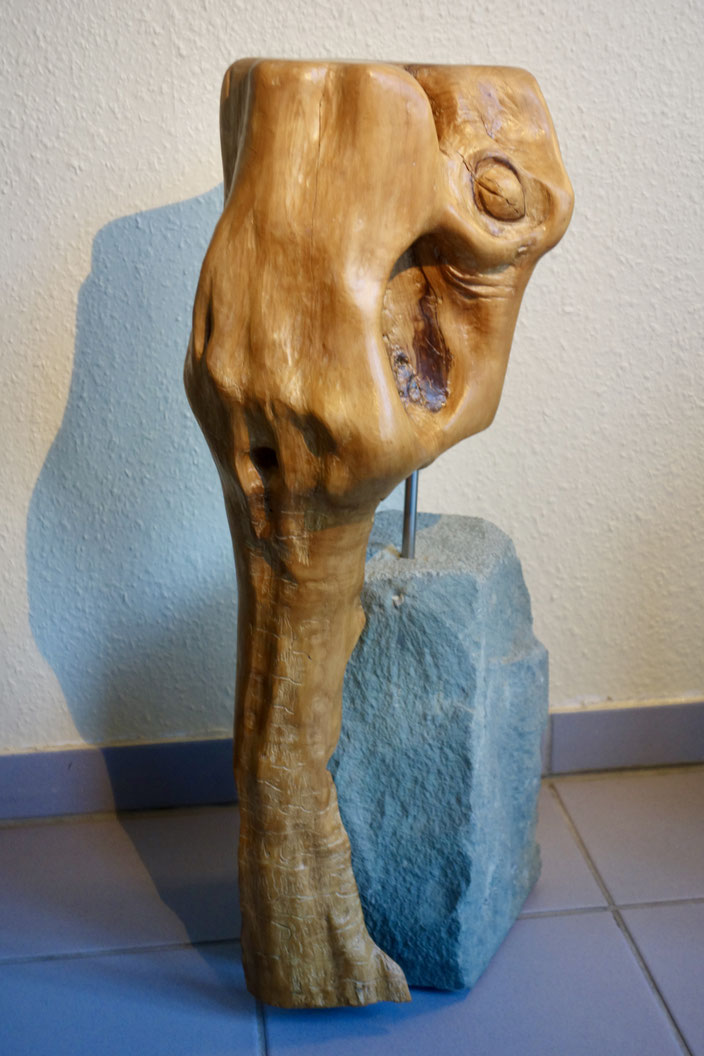 "Der bewegte Mann", alte Eiche auf Anröchter Sandsteinsockel, ca. 15 X 70 X 15 cm (BxHxT)