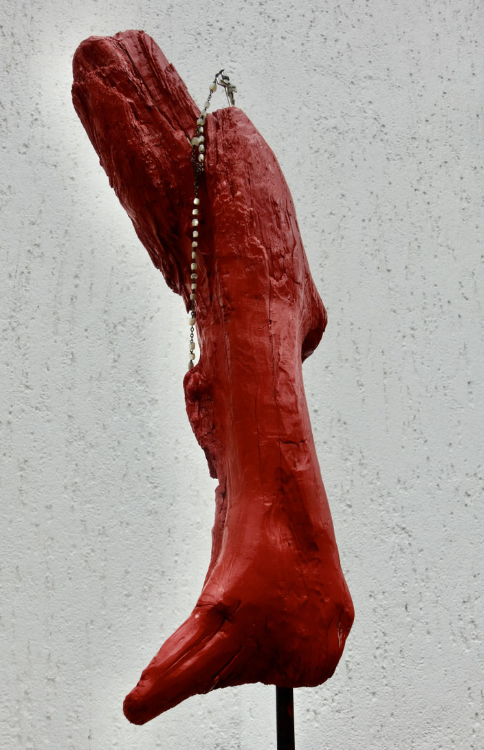 "Pilgerziel", Fundholz, Acryl und Rosenkranz, ca. 20 X 50 X 30 cm (BxHxT)