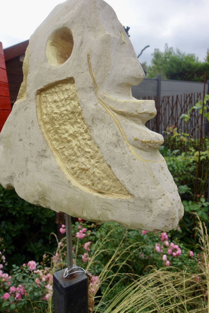 "Incognito", Pfälzer Sandstein und Acryl, ca. 20 X 35 X 17 cm (BxHxT)